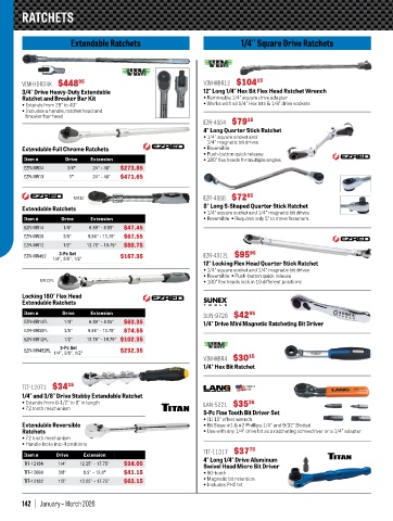 Extendable Ratchets 1/4'' Square Drive Ratchets