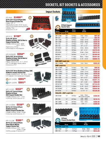 • Shallow & Deep: 5/16" – 3/4", 8mm – 19mm GRY-1326MD 1/2" 26-Piece 10mm – 36mm $470.85
