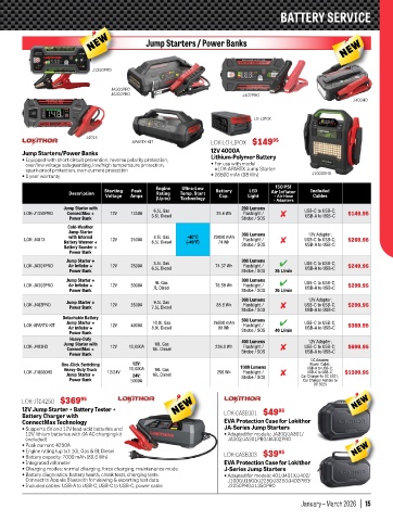 • Charging modes: normal charging, force charging, maintenance mode J-Series Jump Starters