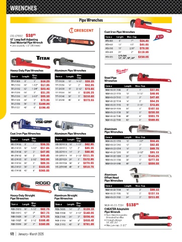 RGD-31015 12" 2" $67.75 RGD-31100 18" 2-1/2" $149.05 Pipe Wrench