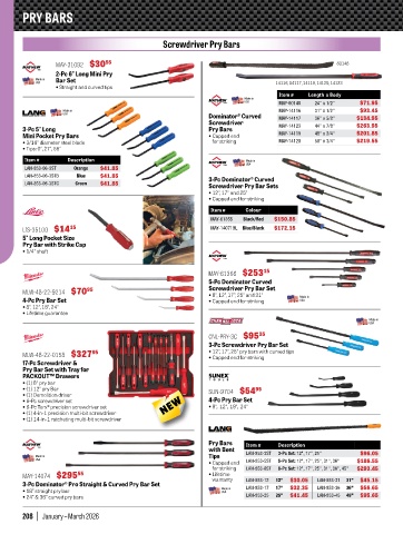 3-Pc Dominator® Pro Straight & Curved Pry Bar Set warranty LAN-853-12 12" $30.05 LAN-853-31 31" $45.15