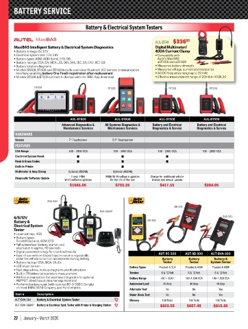 AUT-BVA-360 Battery & Electrical System Tester P Memory 100 Tests 100 Tests 100 Tests