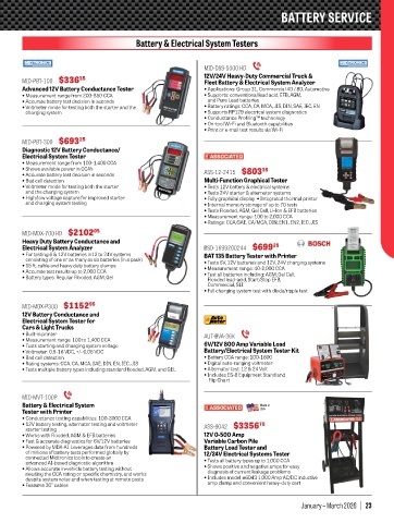• For testing 6 & 12V batteries in12 to 24V systems BAT 135 Battery Tester with Printer