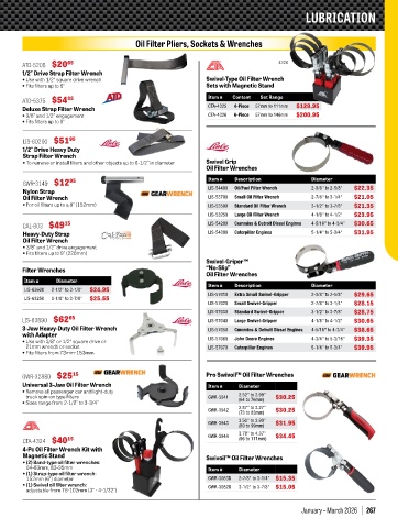 • For oil filters up to a 6" (152mm) LIS-53500 Standard Oil Filter Wrench 3-1/2" to 3-7/8" $21.35