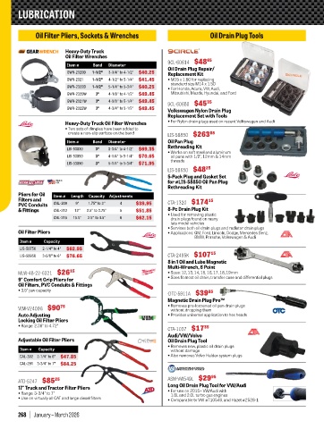 Heavy-Duty Truck Oil Filter Wrenches • For Nylon drain plugs used on recent Volkswagen and Audi