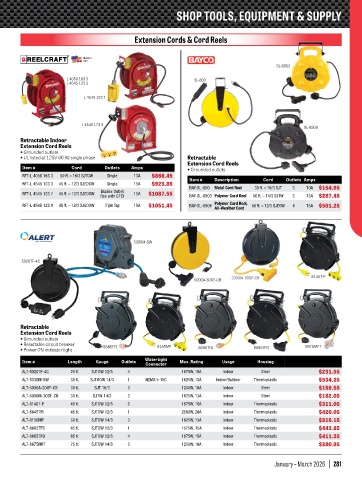 RFT-L 4545 123 3 45 ft. – 12/3 SJEOOW Single 15A $923.85 BAY-SL-800 Metal Cord Reel 30 ft. – 16/3 SJT 3 10A $154.95