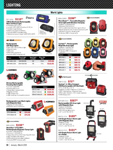• Lumens: 1000/500 Item # Colour USB Rechargeable LED Worklight