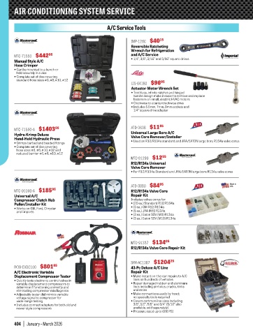 • For R12/R134a Standard and JRA/EATON large bore R134a valve cores