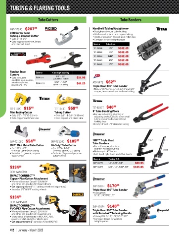 • Includes 1/2" & 3/4" cutting wheels Triple Head 180° Tube Bender
