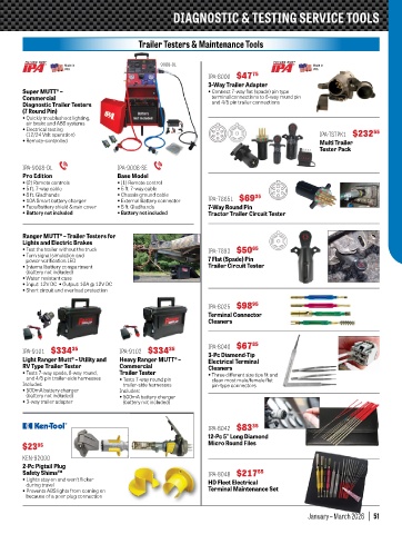 • Tests 7-way spade, 6-way round, Trailer Tester • Three different size tips fit and