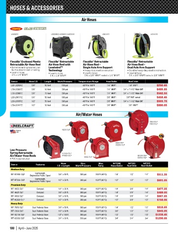 Item # Features I.D. x Length Work Pressure Temp. Hose Outlet Reel Inlet Reel Outlet