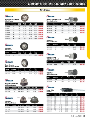 WEI-12306 4" 5/8"-11 UNC 0.014" 10,200 $74.05 Brushes
