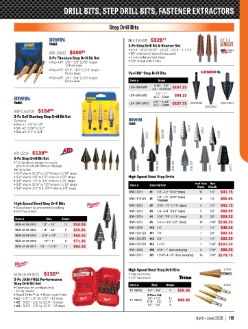 DRILL BITS, STEP DRILL BITS, FASTENER EXTRACTORS