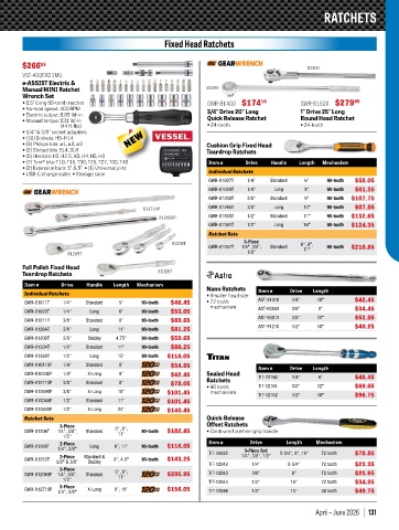 • 8.5" Long 60-tooth ratchet GWR-81400 $174 15 GWR-81500 $279 65