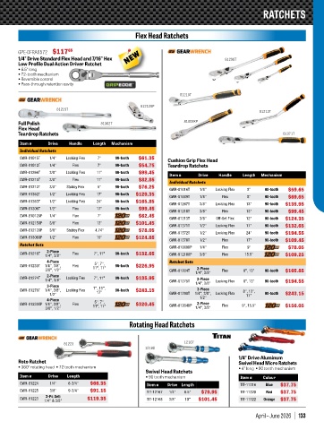 GWR-81015T 1/4" Locking Flex 7" 90-tooth $61.35 Cushion Grip Flex Head
