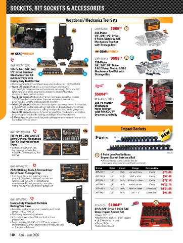 • Tray 2 (52 pieces): features 1/2" drive mechanics tools that include