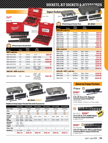 MLW-49-66-7012 1/2" 19-Piece 3/8" – 1-1/2" P GWR-84942N 1/2" 12-Piece 3/8" – 1-1/6" $138.65