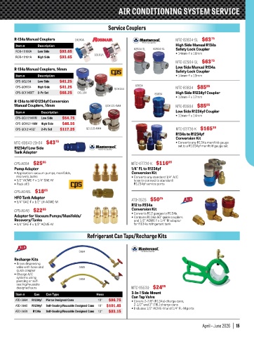 R-134a Manual Couplers 18190A MTC-82834-SL $63 75
