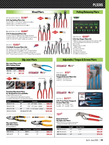 • 10" Tongue & groove pliers • 12" Tongue & groove pliers • 5" Wire connector tool