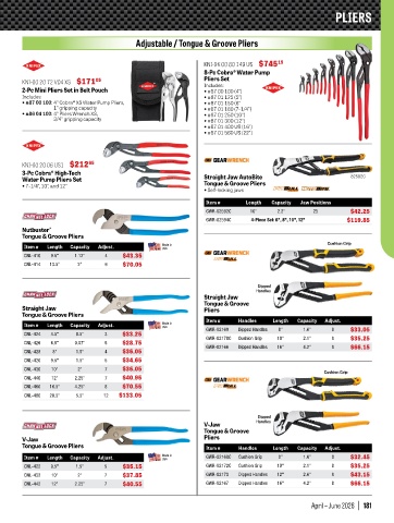Tongue & Groove Pliers Item # Handles Length Capacity Adjust.
