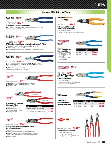 9" Long High Leverage Lineman’s Pliers VIS-2078208 LP8 ® 8" $26.15