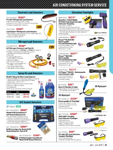 • Works with R134a and R12 systems • High/Low/Strobe light