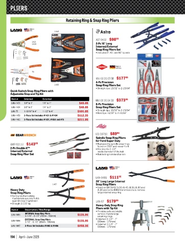 LAN-1434 3/8" to 2" 1/4" to 2" $48.85 Snap Ring Pliers Set