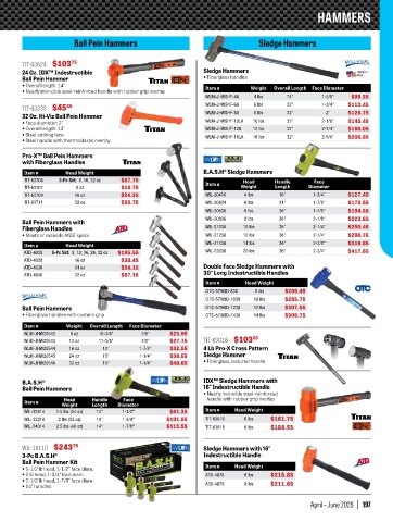 • 2 lb head, 1-3/4" face diam. ATD-4076 6 lbs $215.85