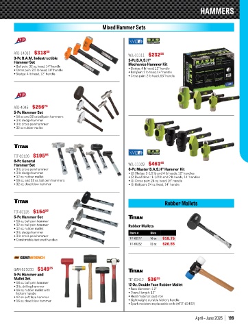 • 32 oz. rubber mallet • (2) Dead blow : 1-1/2 lb and 2 lb heads, 14" handles