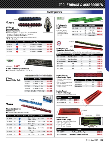 Socket Holder Rails • Accommodates all types Item # Drive Posts
