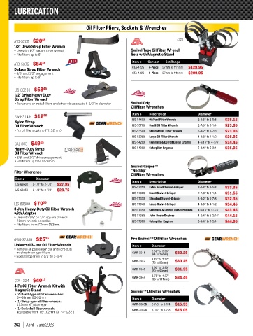 • For oil filters up to a 6" (152mm) LIS-53500 Standard Oil Filter Wrench 3-1/2" to 3-7/8" $23.95