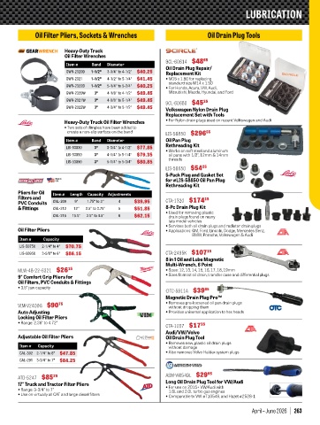 Heavy-Duty Truck Oil Filter Wrenches • For Nylon drain plugs used on recent Volkswagen and Audi
