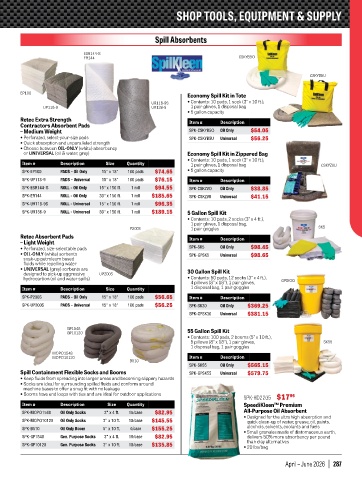 SPK-P200S PADS - Oil Only 15" x 18" 100 pads $56.65 Item # Description