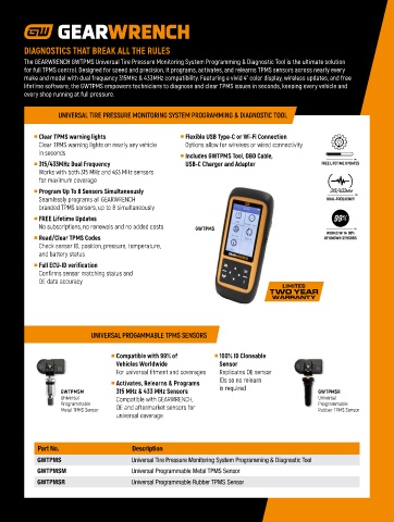 The GEARWRENCH GWTPMS Universal Tire Pressure Monitoring System Programming & Diagnostic Tool is the ultimate solution