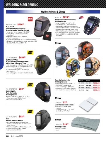 • Large auto-darkening lens: 4.5" x 5.25" • Includes (2) solar cell 3V lithium batteries