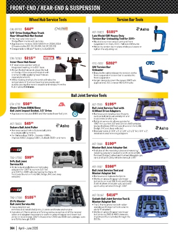 joints on most Dodge, GM, Ford and other 2WD and 4WD cars, pickups, vans import and Euro vehicles through the