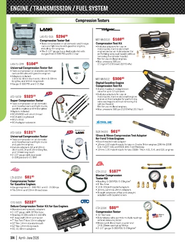 • Tests compression on all domestic and foreign Compression Test Kit