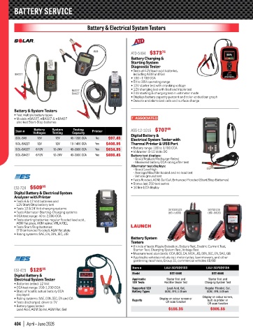 SOL-BA427 6/12V 12-24V 40-3000 CCA Yes $698.45 Battery test displays: