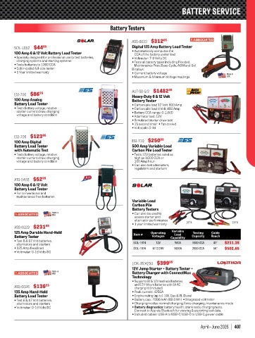 • Tests battery voltage, relative • Carbon pile load 6 Volt: 400 Amp