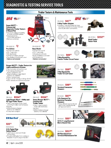 • Tests 7-way spade, 6-way round, Trailer Tester • Three different size tips fit and