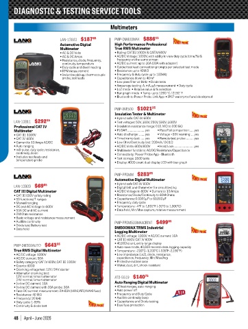 • Duty cycle and dwell reading • Guided test lead connection prompts per selected test mode