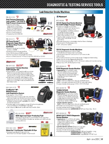 Diagnostic Vapor Machine • Smoke test to find leakage points