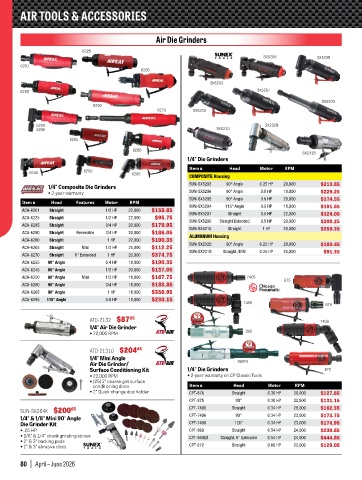 1/4" Composite Die Grinders SUN-SX5203 90° Angle 0.25 HP 20,000 $213.85