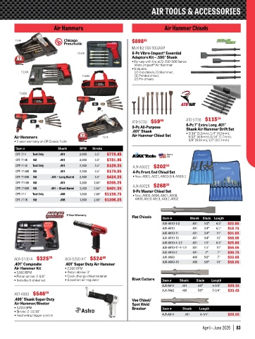 • Includes 5-chisel set • 4 position air regulator Rivet Cutters Item # Shank Blade Length