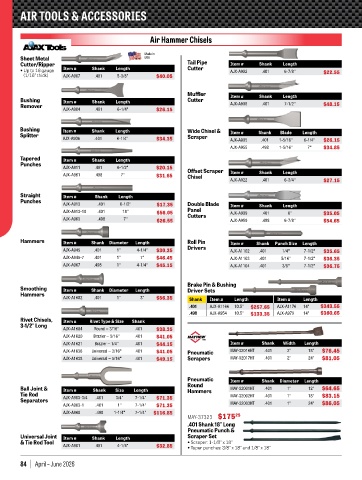 AJX-A961 .498 7" $31.65 Chisel Item # Shank Length