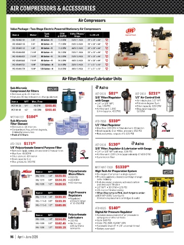 • Removes liquid, water, dirt and debris from air lines • 1/4" or 3/8" NPT with max. 135 PSI