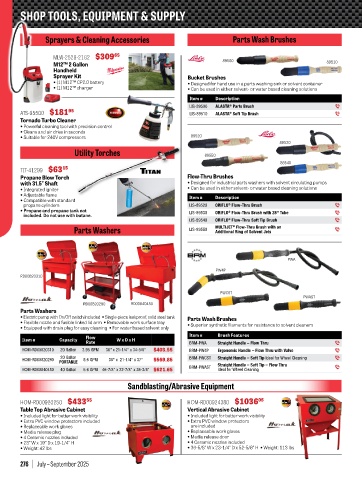 • Electric pump with On/Off switch included • Single-piece leakproof, solid steel tank Parts Wash Brushes