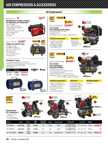 BEP-67.000.700 $145 55 • 13 HP Honda GX390 • 4,000 Watt