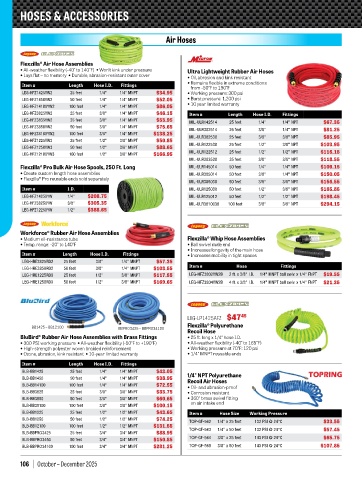 • All-weather flexibility (-40° to 140°F) • Won’t kink under pressure Ultra Lightweight Rubber Air Hoses