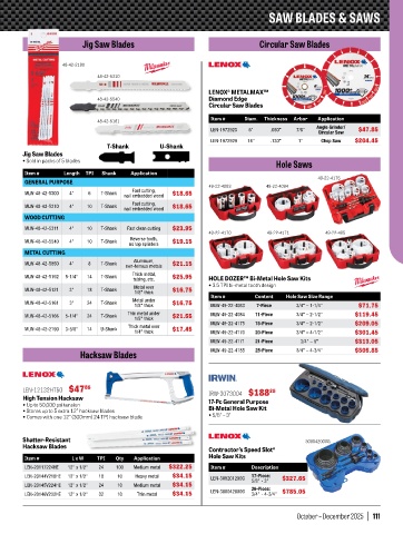 Hacksaw Blades MLW-49-22-4185 28-Piece 3/4" – 4-3/4" $505.85